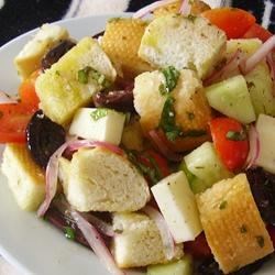 Kalamata olives add a mouthwatering flavor to this classic Italian bread salad with fontina cheese, tomatoes, and cucumber.